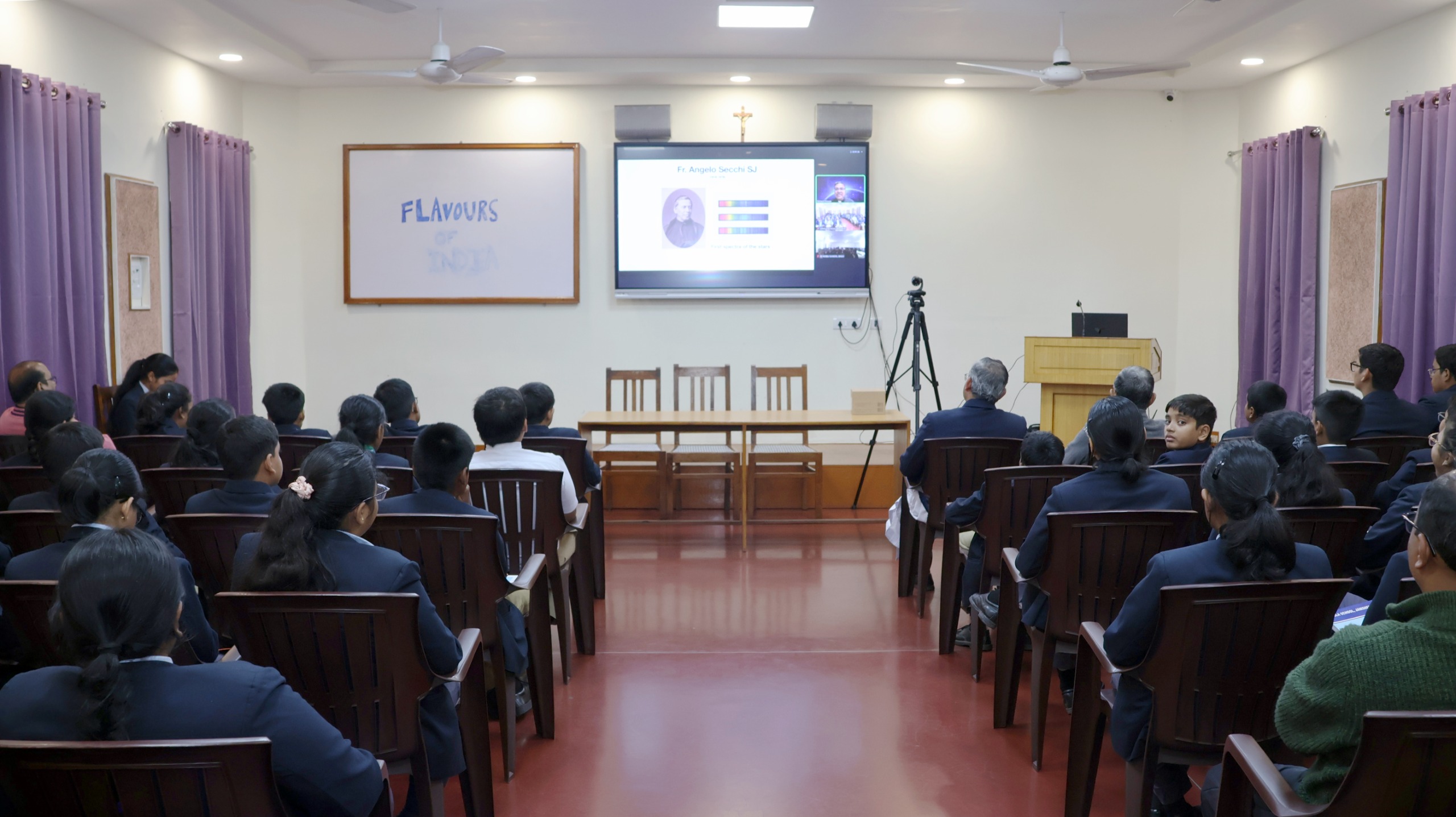 During the interactive session, students eagerly asked questions related to galaxies and space exploration. Fr. D’Souza patiently and clearly addressed all their doubts, encouraging scientific curiosity and critical thinking.