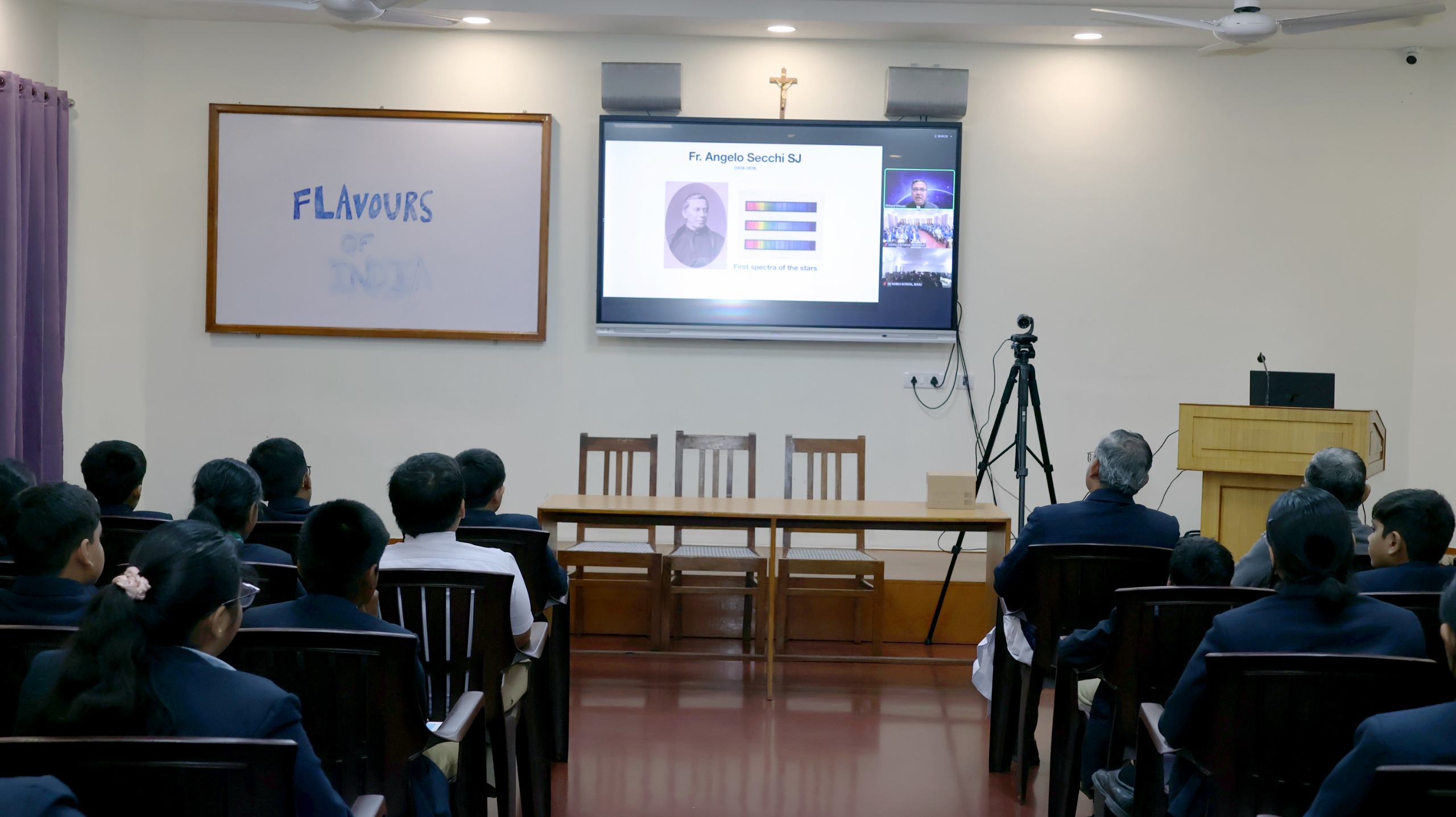 On 1st of December 2025, the students of Loyola School, Jamshedpur, and De Nobili School, Bhuli had the privilege of attending an enriching online session on astronomy conducted by Fr. Richard A. D’Souza, S.J. During the session, Fr. Vinod Fernandez, Principal of Loyola School, Tr. Jayanti Sheshadri, Vice Principal and Senior Alumni Member Mr. Rony D’Costa were also present, adding significance to the event. Fr. Richard is a renowned Jesuit astronomer known for his research on galaxies and cosmic structures. He has done his Ph.D in Astronomy from the Ludwig Maximilian University, Munich in 2016. He has also worked with leading observatories around the world and is widely respected for his scientific contributions as well as his dedication to education and outreach.